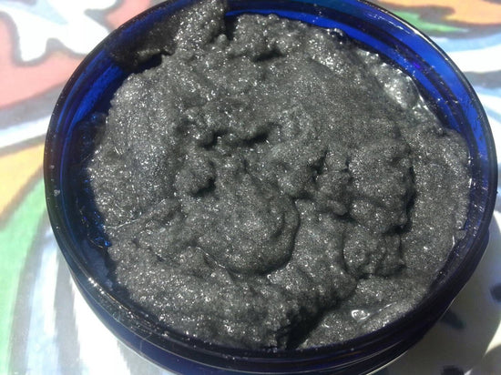 Ingredients: organic cane sugar, avocado oil, organic coconut oil, shea butter, mango butter, emulsifying wax, stearic acid, phenoxyethanol/caprylyl glycol (preservative), activated charcoal, vitamin E, essential oil