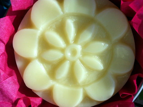 Comes packaged in a reusable 2 ounce metal tin or a 2 ounce twist up deodorant container. Perfect for gift giving or keeping for yourself. It fits easily in a pocket or purse for lotion on the go. Great for every day, all-over body use. Each bar measures a little more than 2 inches in diameter and weighs slightly more than 1 ounce. Designs vary.