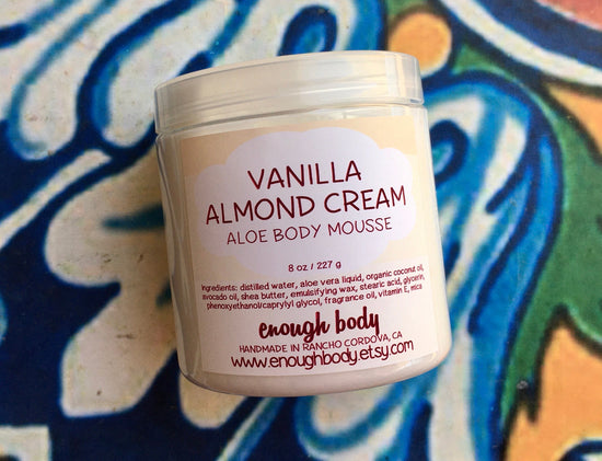 An emulsified body butter perfect for all weather. Packed full of shea butter, avocado oil, coconut oil, and blended with aloe vera liquid. Goes on smooth and absorbs easily without a greasy feeling. Creamy, thick, and nourishing for when you want to stay glowing.